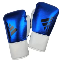 Adidas Hybrid 400 Lace Up Leather Boxing Gloves – Metallic Blue / White