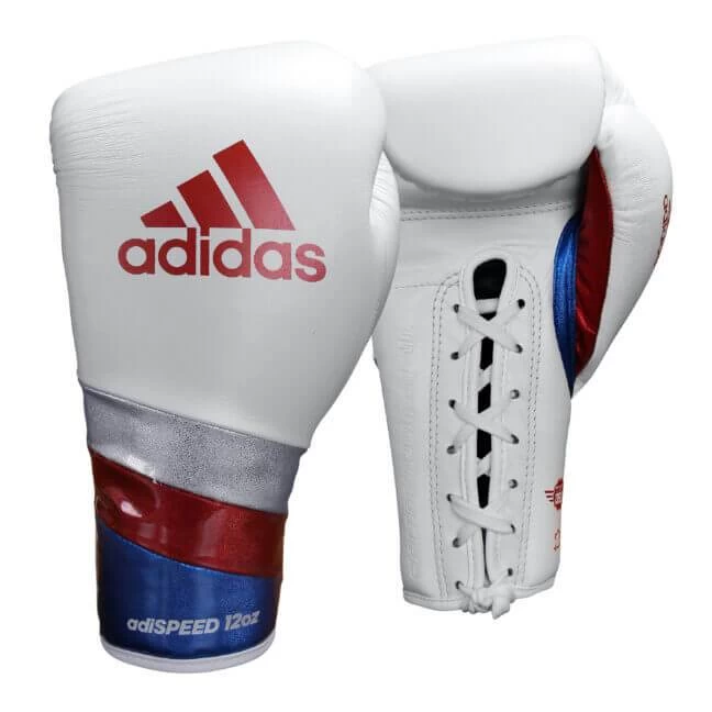 Adidas Adispeed Lace Up Pro Boxing Gloves – White Blue Red