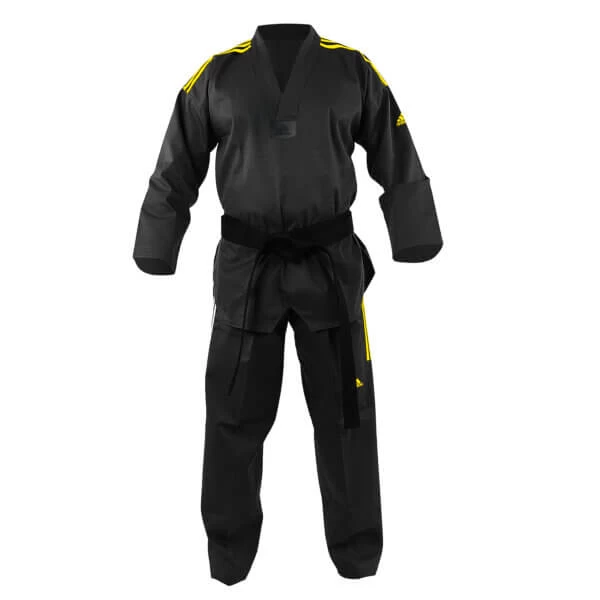 - adidas BLACK Coloured Dobok with YELLOW adidas stripes