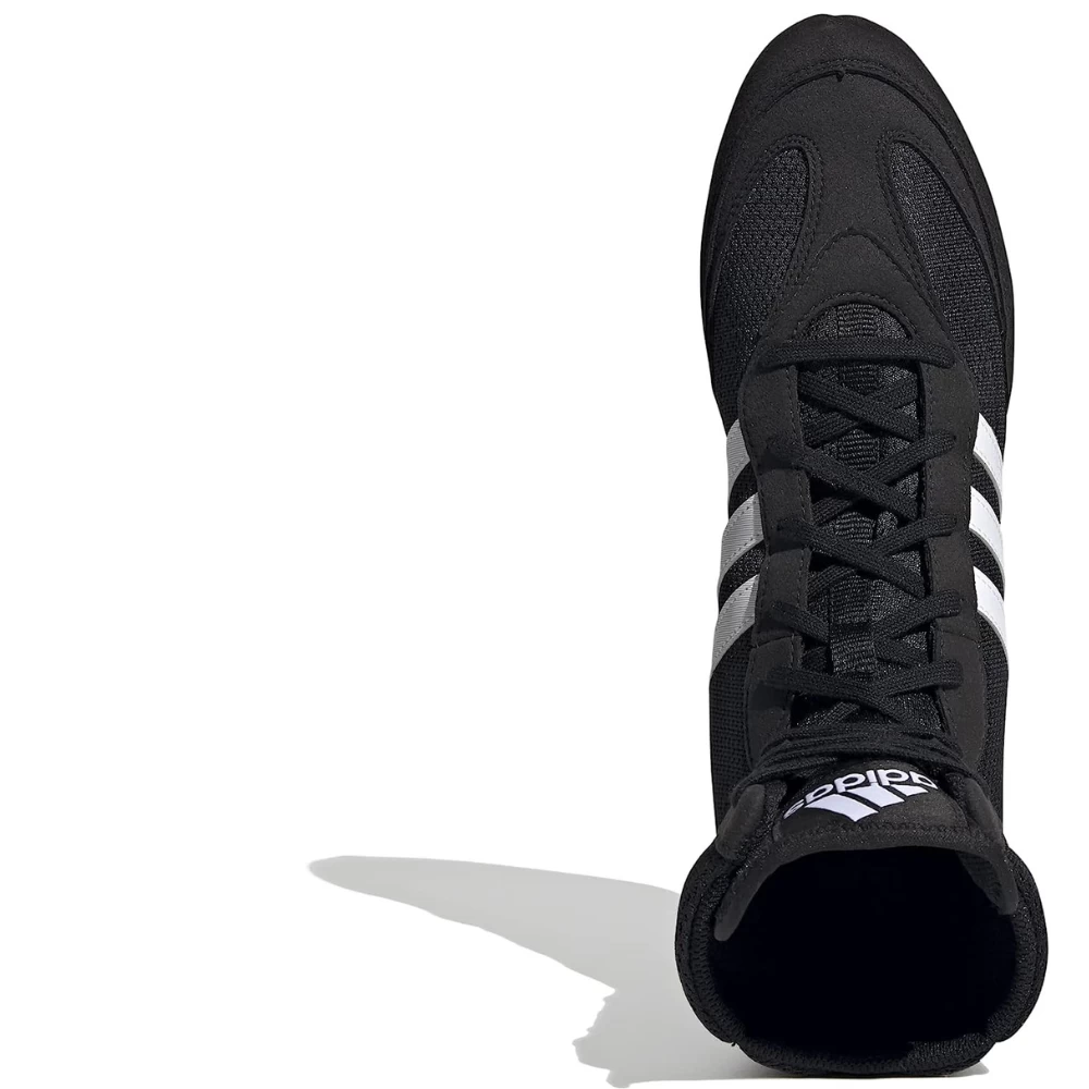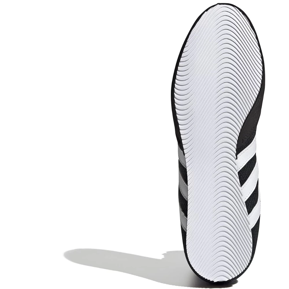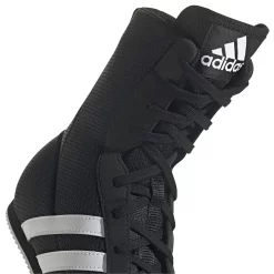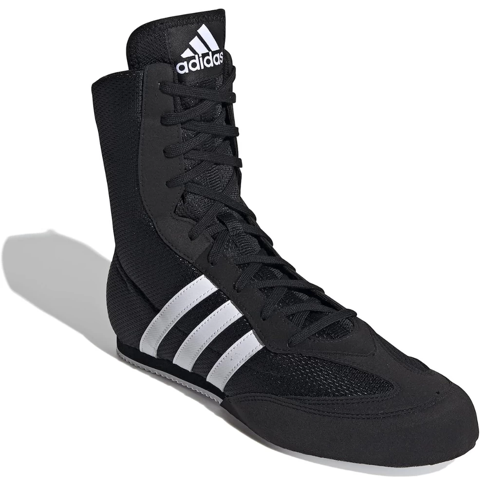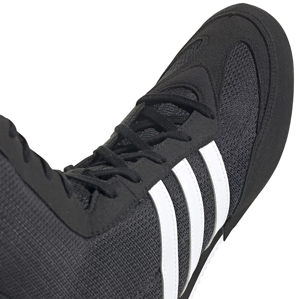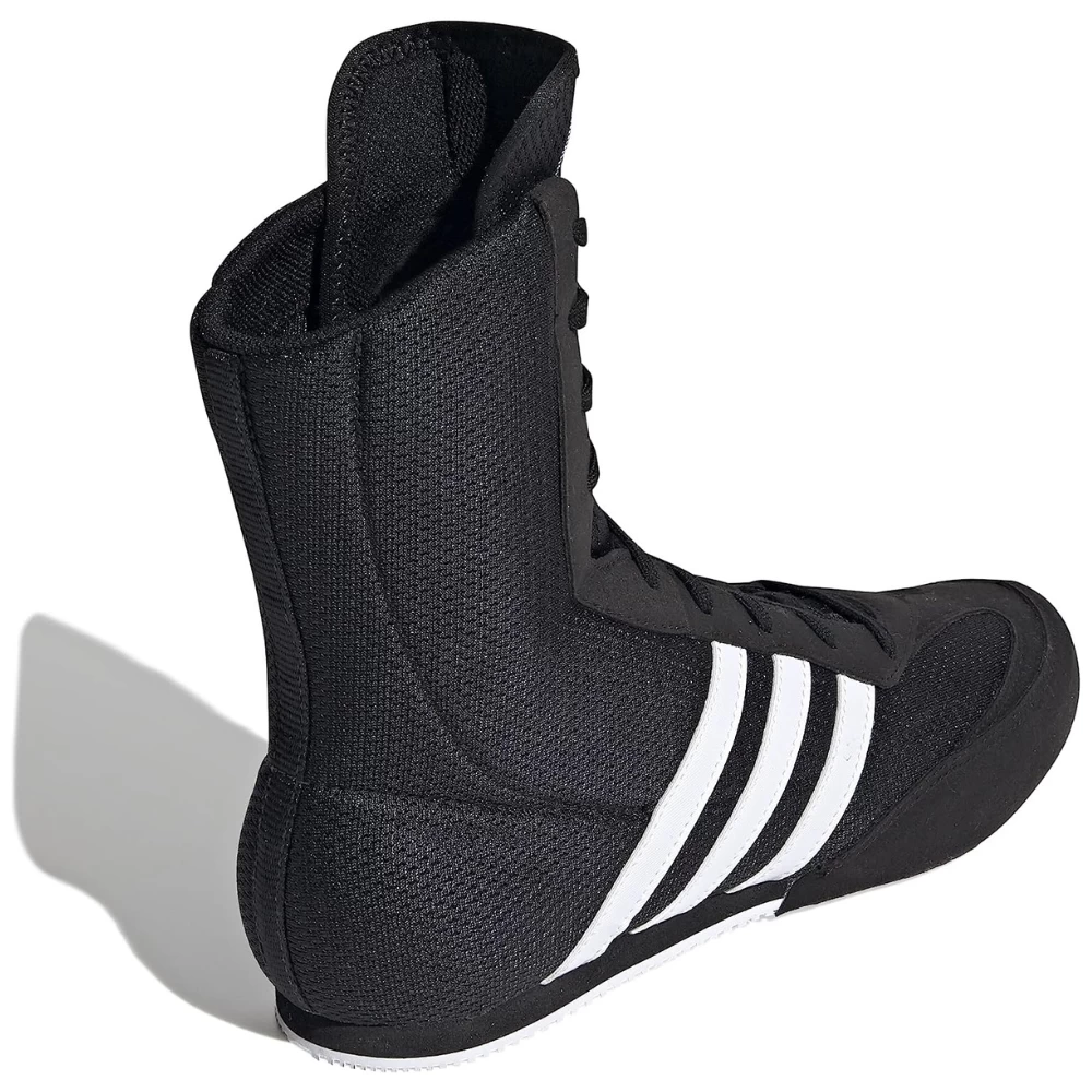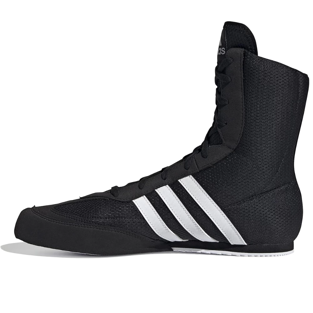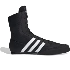 The Adidas Box Hog 2 Boxing Shoes Boots combine classic Adidas style with modern performance, giving you the best of both worlds. Crafted with a breathable mesh upper and a low-profile cushioned midsole, these shoes offer superior climate control, durability and comfort. Plus, their gum rubber outsole provide optimal traction and grip for agile performance. With their black upper and white stripes, they look just as good as they feel!