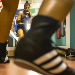 - These boxing shoes deliver agile performance with a breathable mesh upper and a low-profile cushioned midsole. A gum rubber outsole provides traction and grip