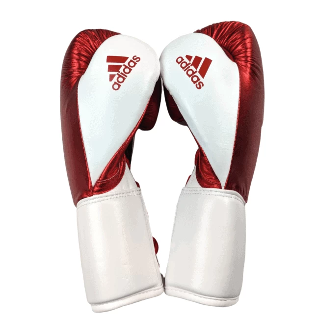Adidas Hybrid 400 Lace Up Leather Boxing Gloves – Metallic Red / White