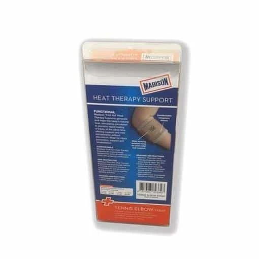 The tennis elbow strap has a wide variable tension strap that assists in the relief of pain caused by inflamed tendons and offers support to the elbow joint by reducing stress on impact. It also has a soft, comfortable neoprene sleeve.