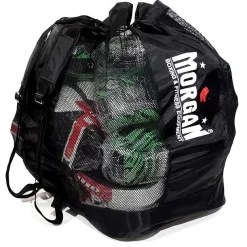 MORGAN MESH SPORTS BALL BAG Made with an industrial-grade mesh fabric, Morgan mesh equipment sports bags are designed for trainers and coaches who need their group training equipment to air out after long and sweaty training sessions. Designed to hold over 20+ pads/gloves or 20+ rugby league balls, these bags are over 80cm in height and 60cm wide. Heavily ventilated and re-enforced ensures that this bag will last year after year. Can hold between 20+ pads, gloves or rugby league balls Great for carrying lightweight training equipment Ventilated airflow mesh design reduces bacteria and odour from damp and sweaty gear Dual adjustable backpack straps Harden bottom area to eliminate any bag sag 80cm high x 60cm wide