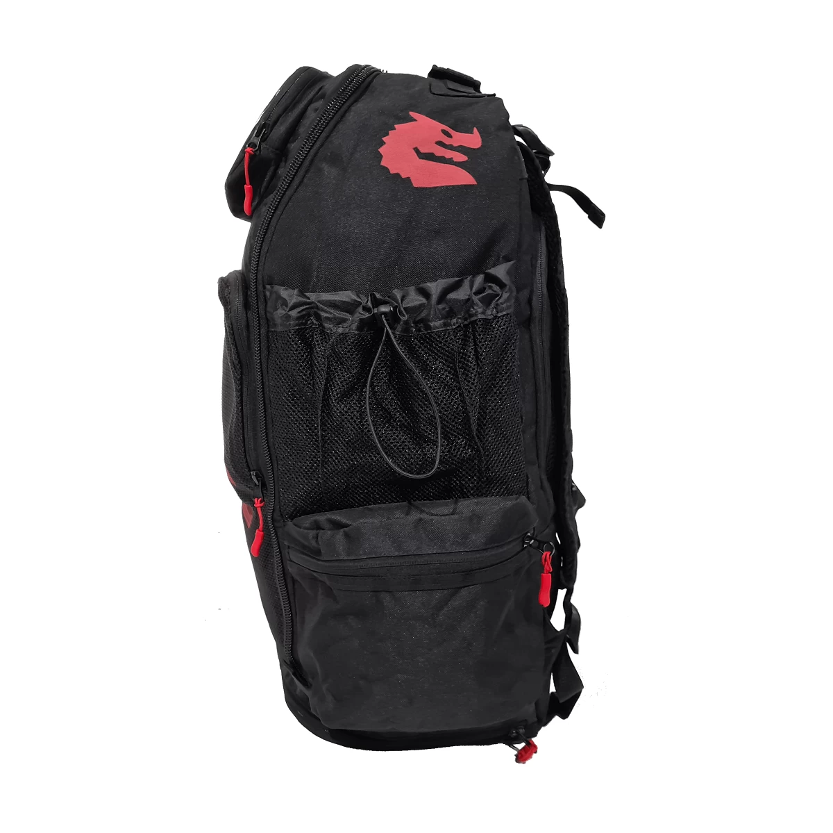 MORGAN ULTIMATE FIGHTERS BACKPACK Grab your gear and get to training with this Morgan Ultimate Fighters Backpack. Designed to store all of your combat sport and gym training essentials like clothing and fight gear, this backpack features an oversized main storage compartment with a big opening, internal pockets and antimicrobial lining, a separated wet compartment with ventilation to air out your post-workout wear, a padded laptop sleeve to keep your computer safe, plus padded and adjustable shoulder straps for carrying comfort. For organised storage, the backpack has multiple mesh and zippered pockets to stash your gear, along with an additional mesh bag with drawstring closure to air out other items after training or competition. SPECIFICATIONS 100% polyester Dimensions: 21 cm x 35 cm x 57 cm; Volume: 51.5 L Shoe and a wet compartment with mesh inserts for ventilation External laptop compartment; Front zip pocket Side zip pockets; Small front zip pocket