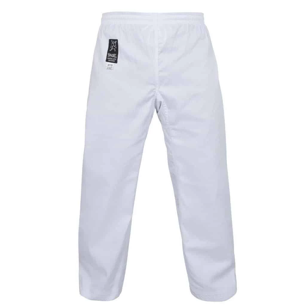 - Black V-Neck elasticated pants with drawstring, with an additional gusset inset in the pants to increase the overall freedom of leg movement
