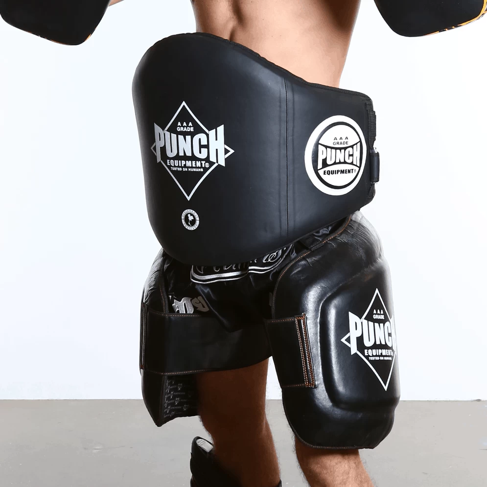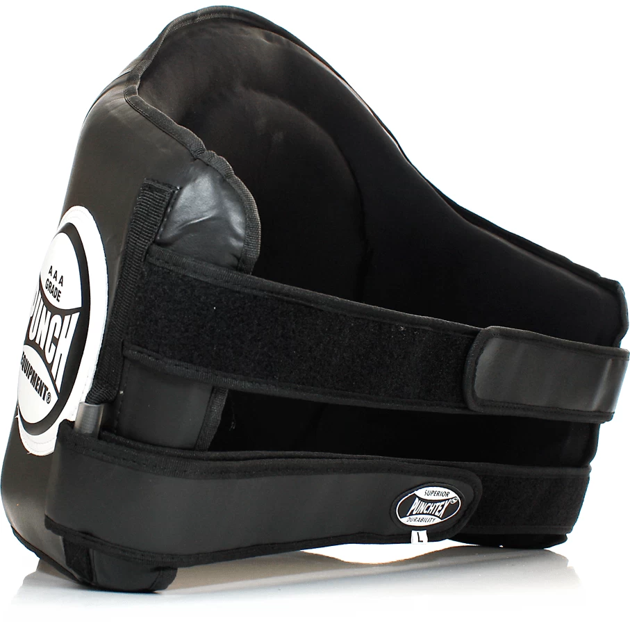 This belly pad is structured for absorbing punches, kicks and knees in muay thai specific training.