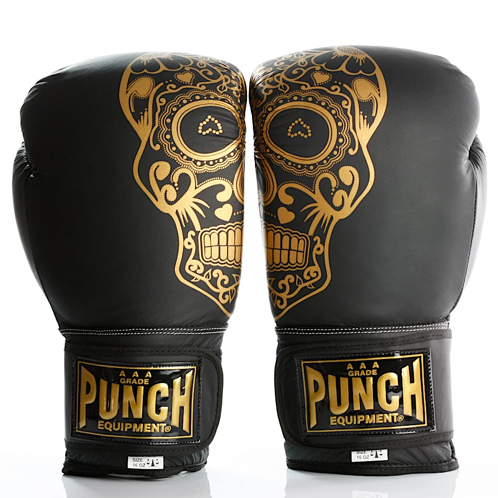 Punch Trophy Getters Gold Skull Commercial Boxing Gloves 16oz – Black / Gold