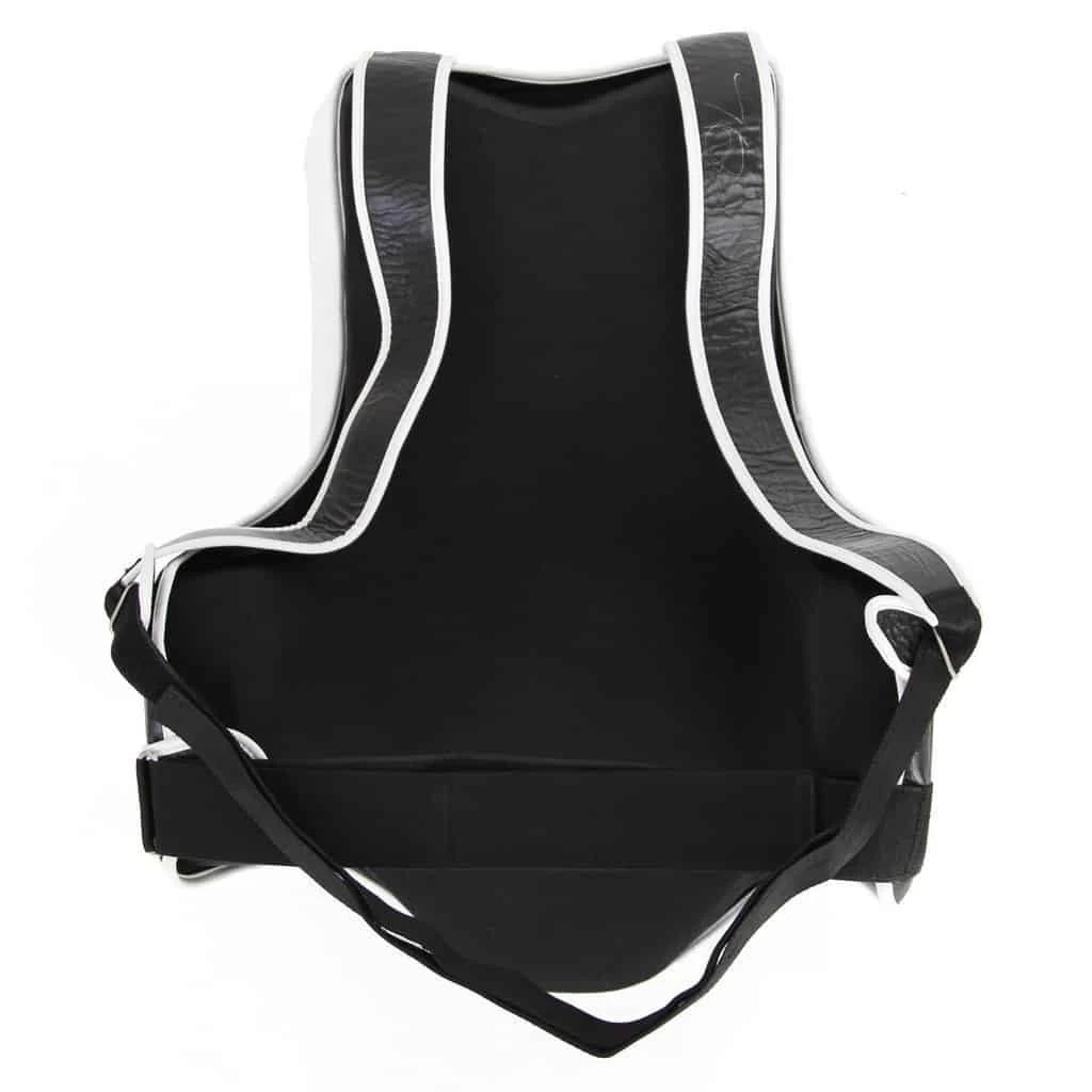 Solid core chest guard that will fit all adults with easy adjustment features so no need for fussing about. Great alternative and comparable in terms of padding and protection and functionality to a belly pad allowing body strikes while training or holding pads. Adult Senior size only available