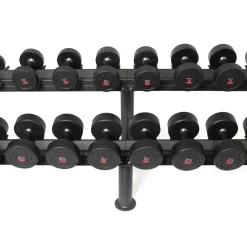 The SMAI Commercial Dumbbell Set and rack is a commercial-grade investment that will look smart in any gym or facility. The set includes 10 pairs of dumbbells from 32.5kg through to 60kg with a storage rack included. The handles are commercial straight-knurled, finished in a black oxide coating. The weights are cast and coated in rubber for safety and noise reduction within the studio.