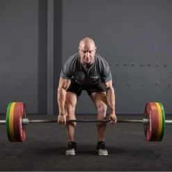 With a new intricate rubber recipe and nickel-plated steel disc centre, these competition bumper plates give a ‘dead-blow’ effect when dropped from overhead in Olympic lifting. This capitalises on safety for those using the equipment and to those near, meaning you don’t have to worry about bars spraying left, right and centre. The protective rubber flanges allow for easy handling and more surface area for point-of-impact making it ideal for CrossFit® boxes.
