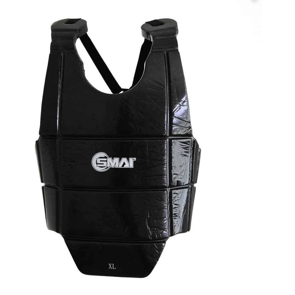 The SMAI Martial Arts Chest Guard features a new design that is foam dipped. The guard is finished in a metallic coat. Created with Velcro closures for easy use. Primarily used in ISKA sanctioned events, however the chest guard is ideal for all martial artists that want to add protection for sparring and contact purposes.