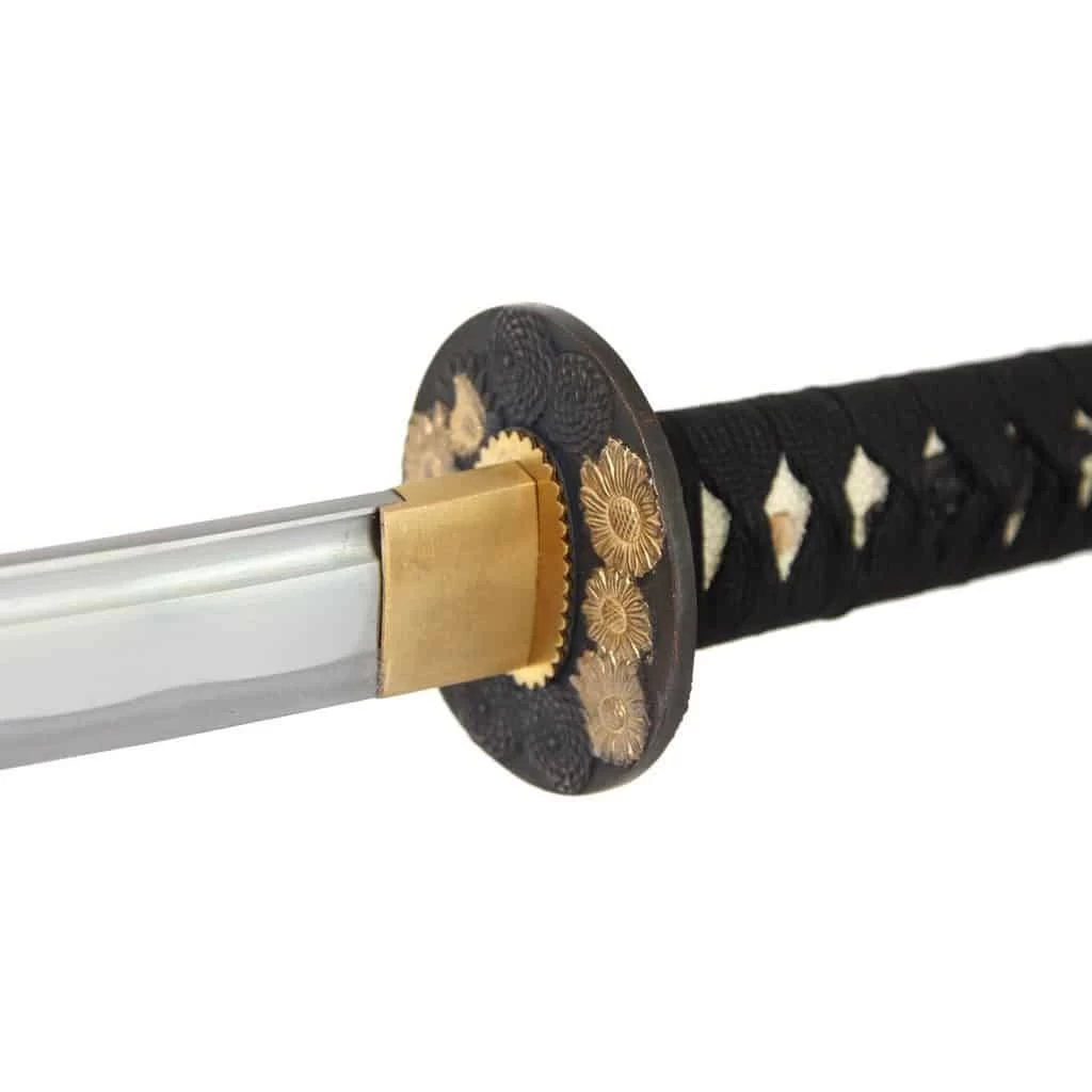 With high quality carbon steel, the Carbon Chrysanthemum Katana has a razor sharp blade suitable for Tameshigiri. Hamon, Blood groove, Full Tang and all the features you would expect in a high quality sword.