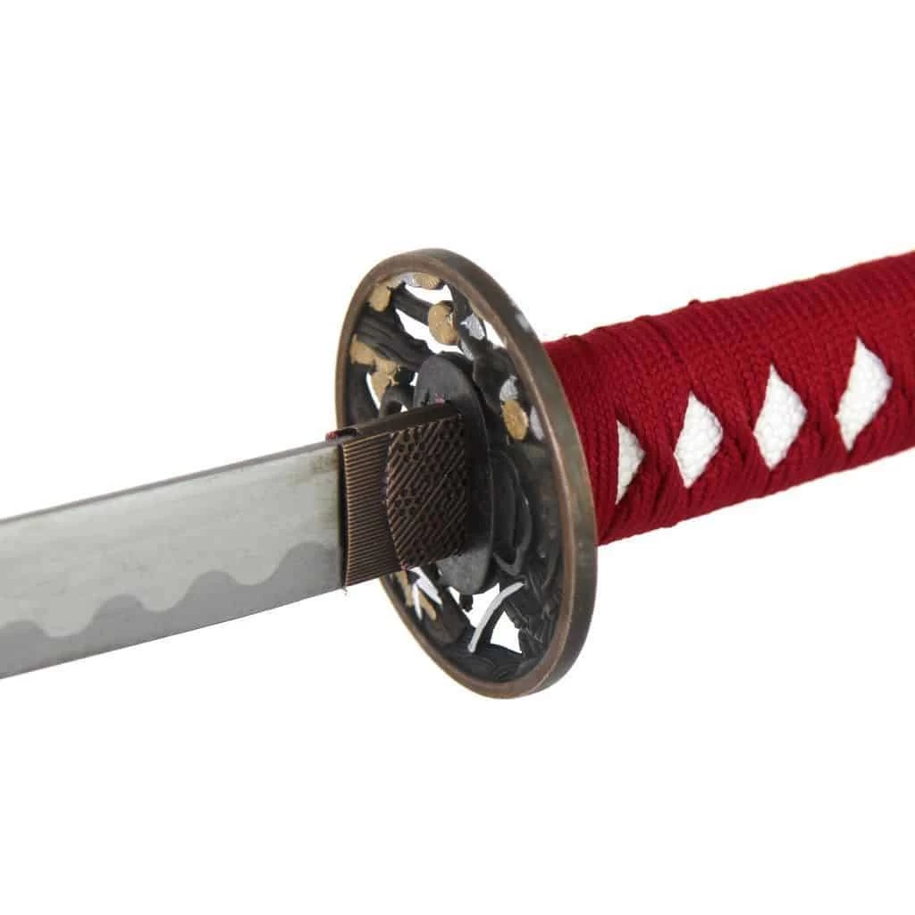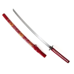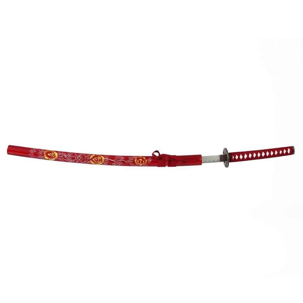 The Crimson Katana features a hand painted Floral design on the crimson enamel coated Saya.
