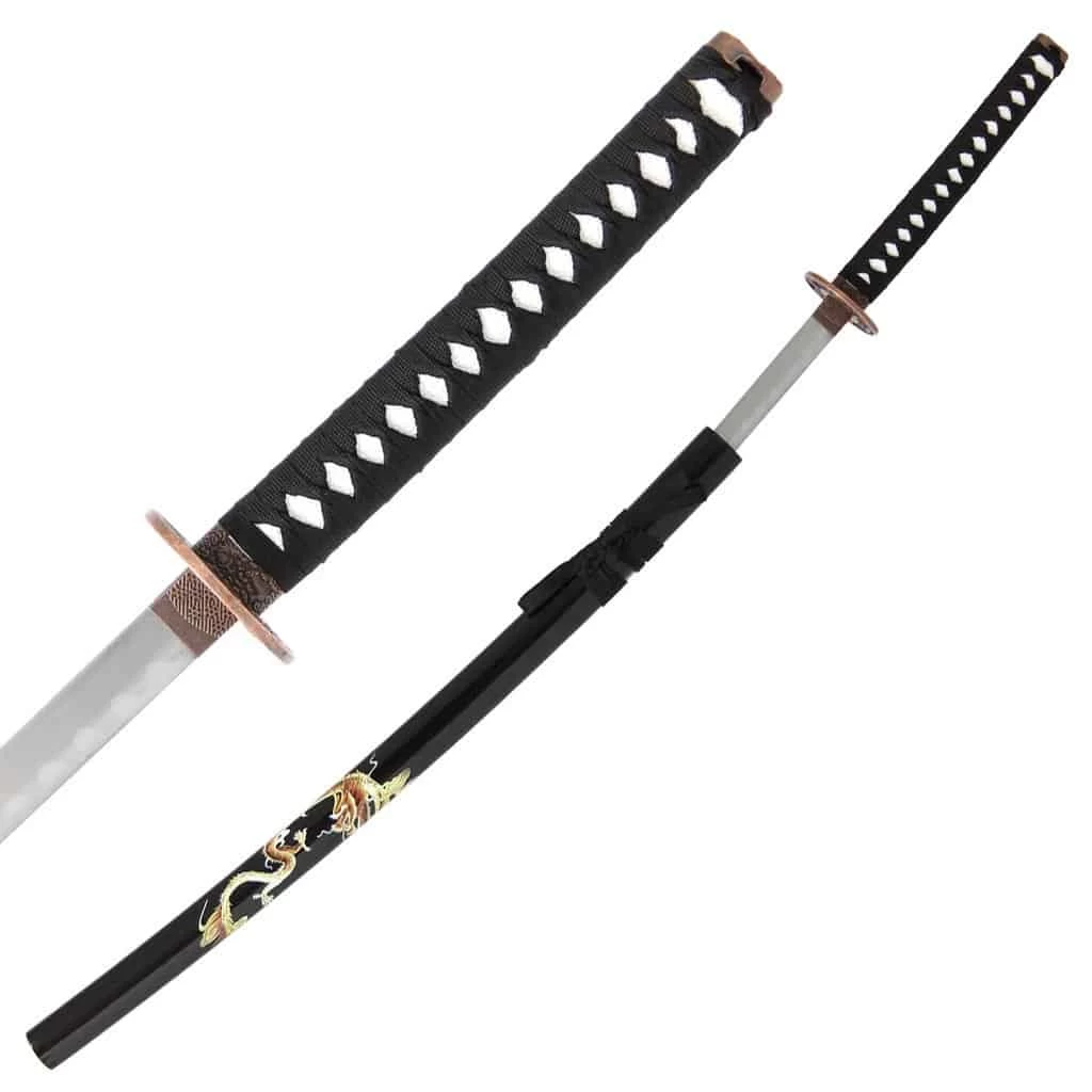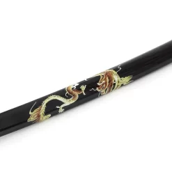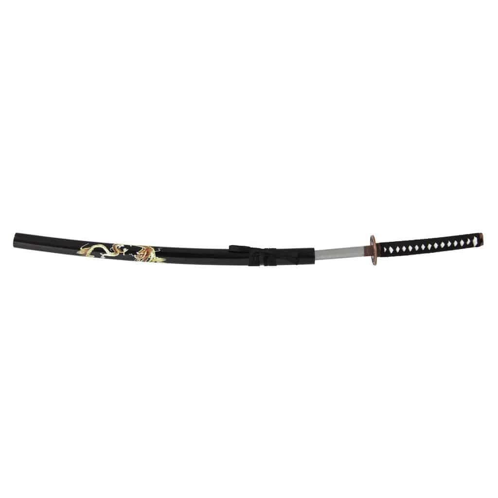 The Gold Dragon Katana features a hand painted design on the Saya.