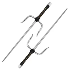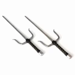The Sai has its origins in Okinawa that can be used in both offensive and defensive capabilities. The most recognisable aspects of this weapon is the pointed baton and varying prongs extending from the handle. The Sai can be used as part of demonstrations or with heavy weapons training.