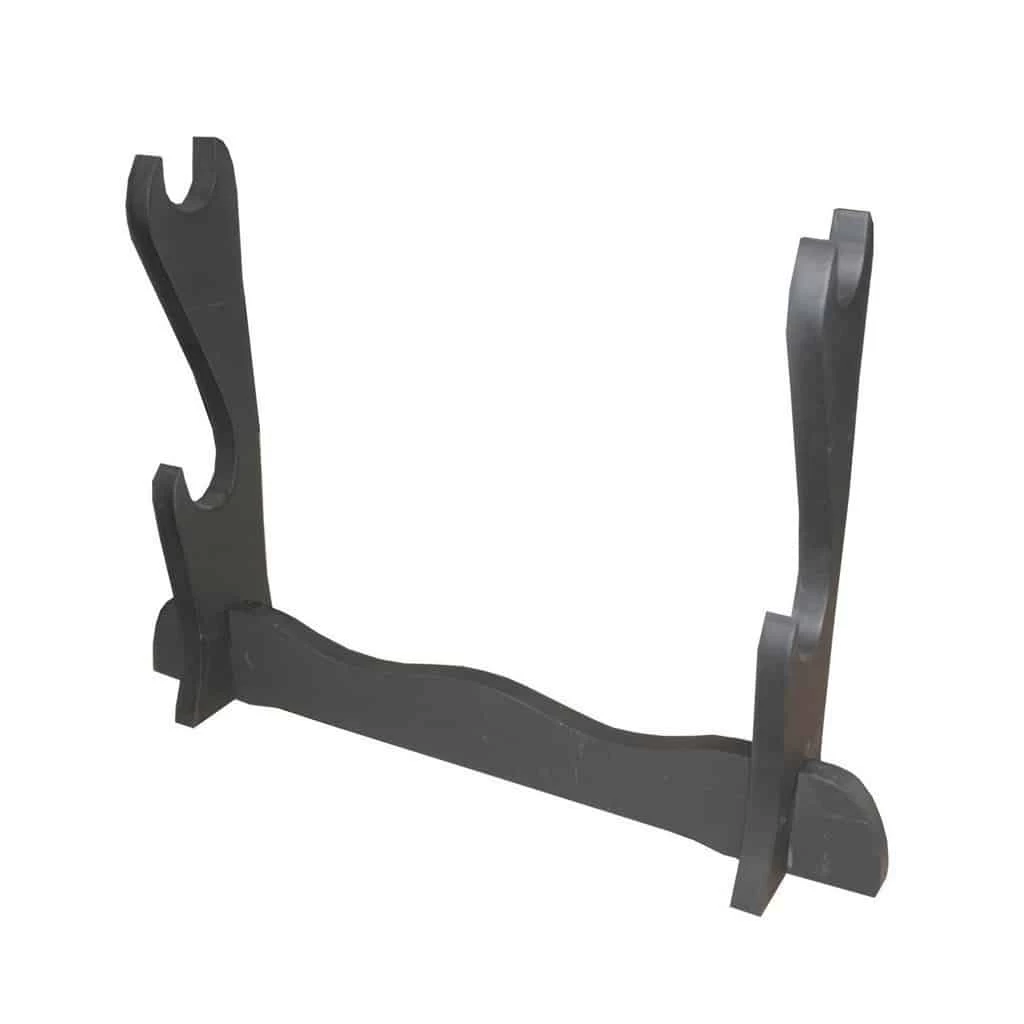 Made from high quality materials this rack allows the elegant display of two swords. With a freestanding design, this rack allows a convenient and stylish display of your prized sword collection.