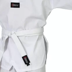 The SMAI Martial Arts Taekwondo Uniform Ribbed uniform is a lightweight Taekwondo Dobok suitable for club and competition use. Made from 35% cotton and 65% polyester blend ribbed fabric it offers top quality strength and durability. SMAI has created a special fighters size chart for the Dobok trousers with a full gusset innovation. This ensures that the trousers give you the freedom you need for fast, effective kicking with minimal resistance.
