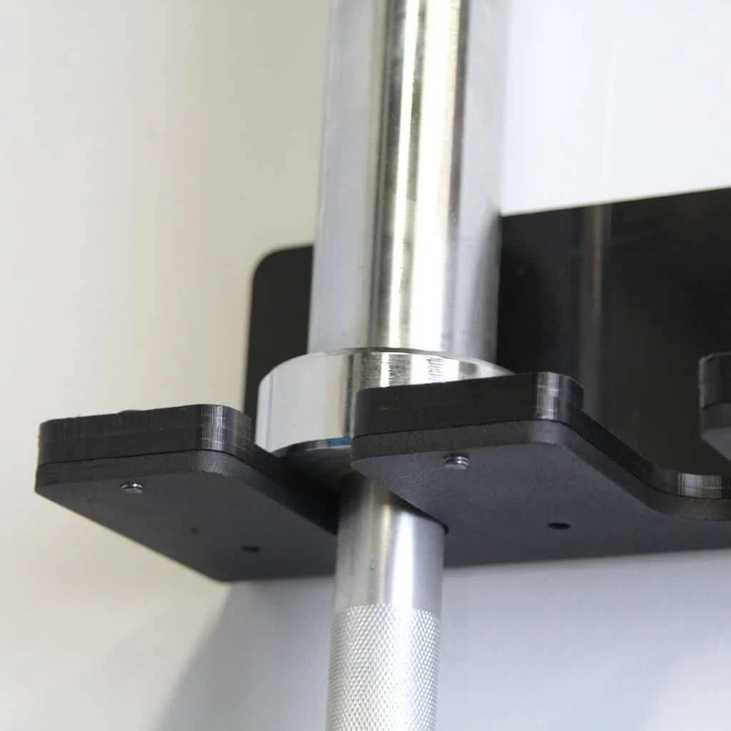 The ultimate storage accessory for your Olympic Barbells. The SMAI Wall Mounted Vertical Barbell Rack is made from thick laser-cut steel. It is designed to hold up to 3 Olympic-sized Barbells in a wall mounted vertical position. Simply slot your barbell collar into the rack to hang it in position. All the mounting points are lined with a protective Nylon layer which helps to prevent any damage to the collar and ensure that your barbells are not scratched during storage.